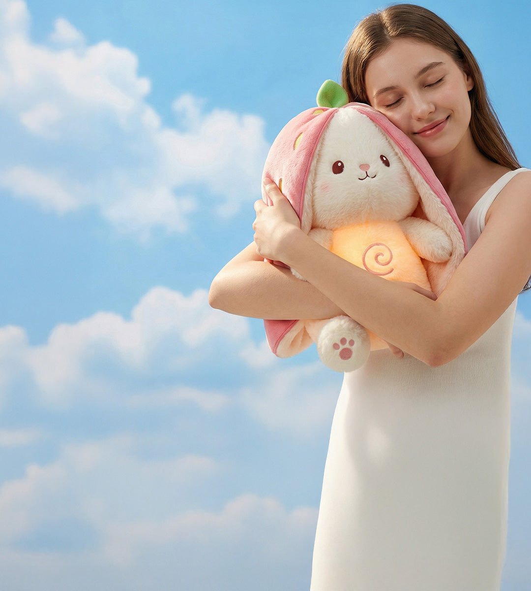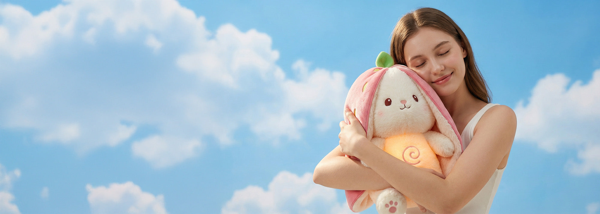 Poznaj HugBunny 🐰💗 — wyjątkowego, oddychającego króliczka, który otula miękkością i spokojem. Został stworzony po to, by uspokajać, wyciszać i pomagać zasypiać 😴🌙.